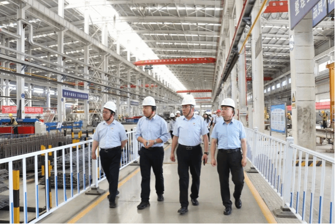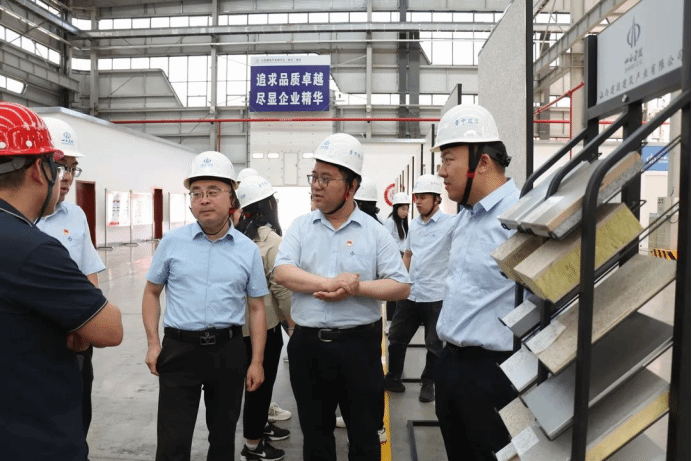 祁国柱、马永宣一行先后深入公司PC产业区、绿色轻型钢构智造中心、装饰保温建材制造中心、高精度模板制造中心、美丽乡村宜品康居房屋类样板间及建筑产业现代化展示中心进行实地参观,详细了解公司各板块的装备优势、智能制造、技术研发、工程业绩等情况。